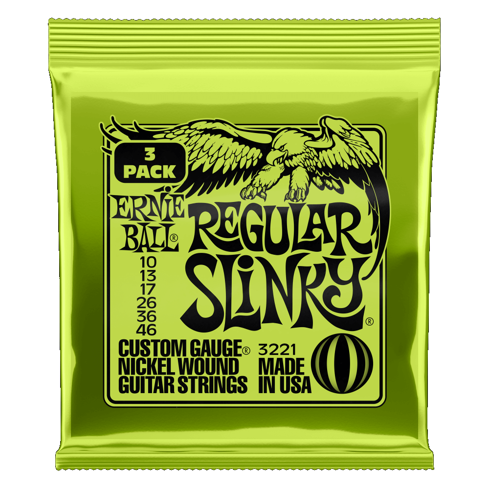 - Three packs of .010, .013, .017, .026, .036, .046 strings