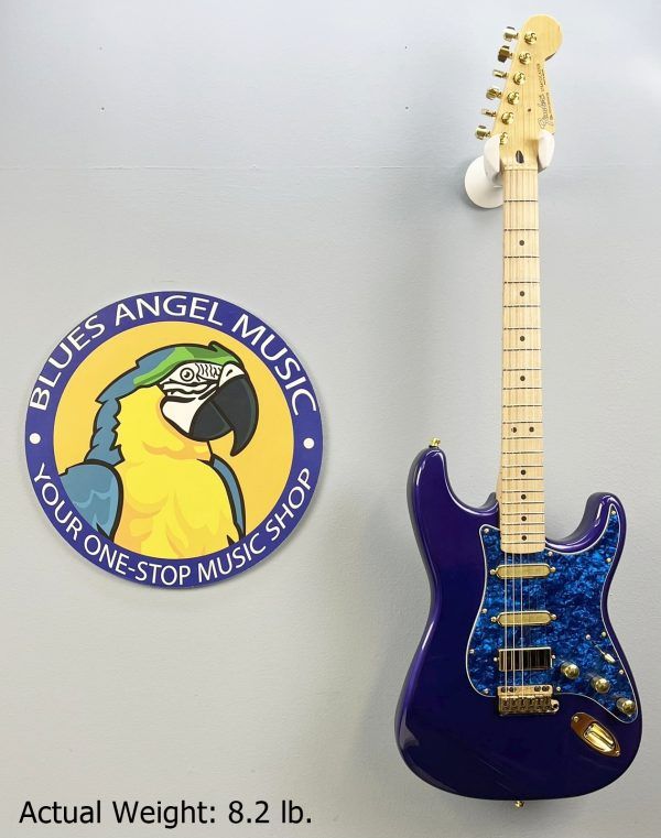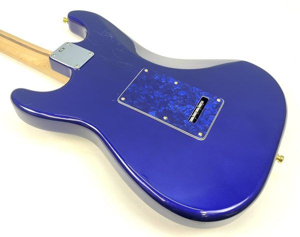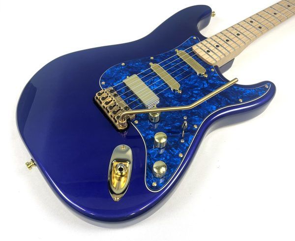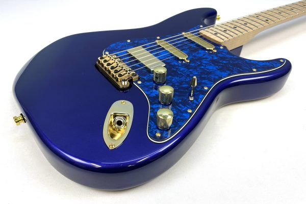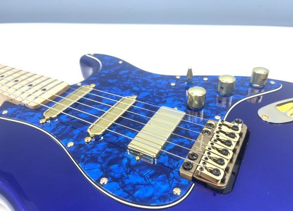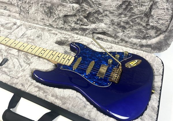 On occasion, we’ll have an instrument arrive in our shop where we see loads of potential; and this late 90’s Mexican Strat is no exception. Our in-house artisans were so intrigued by its unusual Midnight Blue ash body and comfortable playing maple neck, that they decided to upgrade and mod the heck out of it.