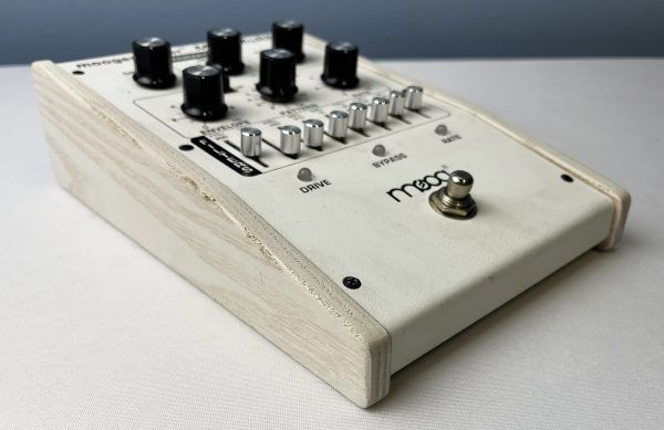 This is a USED pedal. It has been tested by our shop and is in great cosmetic and working condition; With just a few scratches and blemishes on the wooden enclosure along with a moderate amount of small scuffs, rust spots, and stains on the white casing.