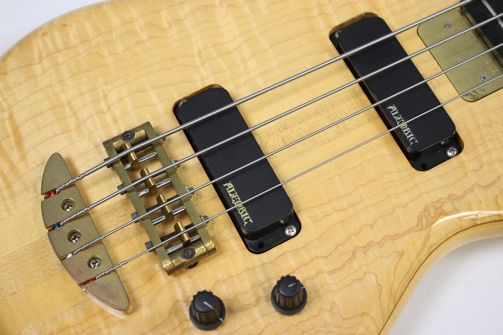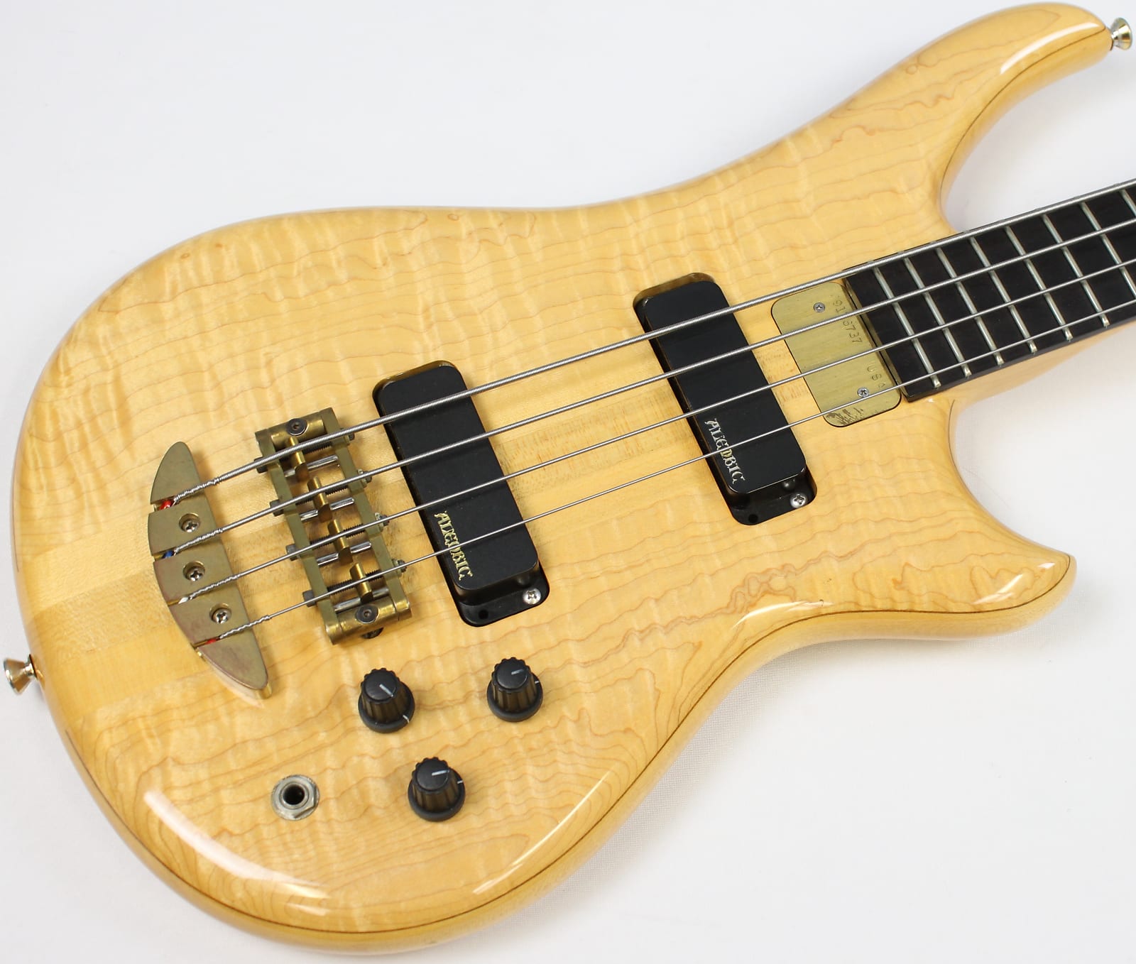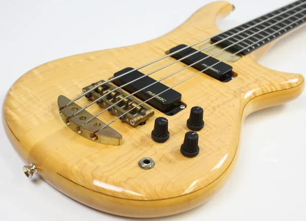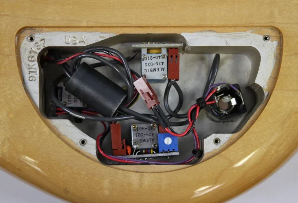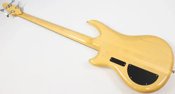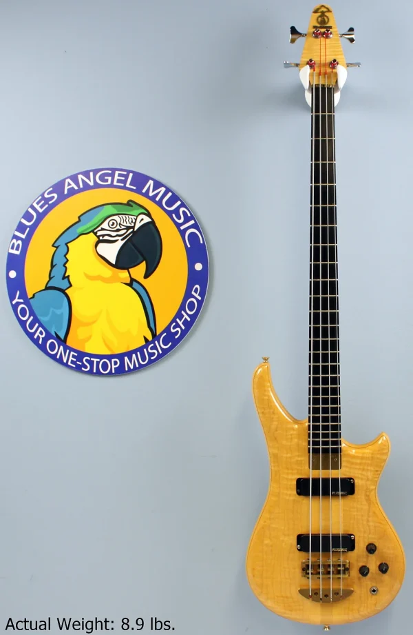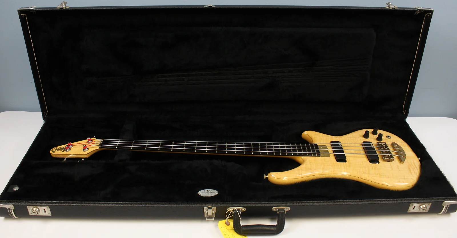 This Vintage 1991 Alembic Essence 4 Bass has been gently owned and is in excellent cosmetic shape with light, normal wear! Tiny pressure dimples on the back of the body and at the treble-side bout can be detected under close inspection, but it’s overall very clean! Hardware shows normal scratches and tarnishing. Neck is straight as an arrow and frets show minimal wear. Looks, plays and sounds fantastic! G&G hardshell case shows noticeable, but normal scuffs and scratches. The accessories compartment’s plastic pull tab is broken, but functional.